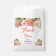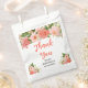 Ce beau et élégant sac de faveur de douche de mariée présente des roses corail roses rouges aquarelles et du feuillage. Le texte combine une écriture manuscrite et des polices serif pour un look stylé et moderne. C'est parfait pour une douche de mariée rustique de printemps ou d'été.