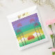 Modern colorful favor bag with retro style sunset and palm trees art.