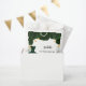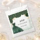 Pour une Quinceañera, fête du 15e anniversaire. Un arrière - plan blanc aux étincelles vert émeraude, une robe et des roses verts. Le nom est écrit avec un script de style moderne écrit à la main. Personnalisez et ajoutez un nom et une date.
