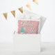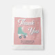 Un joli patinage à rouleaux rose pâle à la fête d'anniversaire favorise les sacs cadeaux avec "Merci" dans un script des années 70 et une illustration d'inspiration rétro d'un patinage à rouleaux bleu turquoise. Personnalisez avec son nom, son âge et sa date de fête dans une simple typographie bleue turquoise.