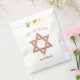 Des sacs de faveur Bat mitzvah personnalisés avec un simple faux rose en or Star of David symbole donnera le ton à votre fête de glamour. Le design simple comprend deux ensembles de texte, BAT MITZVAH dans une arche douce au-dessus du Bouclier d'or rose de David et de la place pour le nom de votre fille dans un script fantaisiste ci-dessous. Remplissez ces sacs de faveur Bat mitzvah personnalisés avec des gâteries ou personnalisez la conception rose de la fausse parties scintillant or pour une fête Hanoukka, un Bar Mitzvah ou toute célébration que vous planifiez.