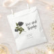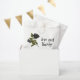 Sacoche de faveur de mariage gothique et rustique avec illustration de rose noir sur un arrière - plan blanc. Le texte dit "amour et merci".