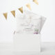 Il s'agit d'une image simple et adorable, avec un rose violet aquarelle, des feuilles et un colibri vibrant contre un arrière - plan blanc avec une bordure mauve douce.