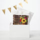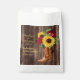 Quinceñeara fête d'anniversaire sac de papier personnalisé faveur avec de belles roses rouges et tournesols en bottes de cowgirl sur un arrière - plan rustique en bois. Personnalisez avec votre nom et votre date de fête.