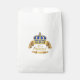 Prince baby shower privilégie les sacs avec belle couronne bleu royal et or et élégantes bannières or. Vous pouvez supprimer les mots It's a Prince pour ajouter le texte de votre choix selon les besoins pour votre événement.