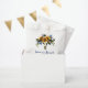 Sacs de mariage bleu marine et jaune d'aquarelle avec un arrière - plan blanc classique qui peut être changé à n'importe quelle couleur, un écran de fleurs de tournesol, plumes, crâne animal, et un élégant modèle de faveur doux.