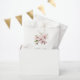Cet élégant sac cadeau de mariage est doté d'une délicate branche de fleurs rousses peinte à la main centrée sur un arrière - plan blanc immaculé. Le sac affiche les noms du couple et la date du mariage dans le serif raffiné type sous l’oeuvre florale, avec un message de remerciement dans une police classique et sous-estimée en bas. La disposition épurée et minimaliste et le motif botanique doux apportent une touche romantique et contemporaine à votre célébration. Idéal pour emballer douceurs, petits cadeaux ou souvenirs, ce sac de faveur ajoute un accent réfléchi et sophistiqué à toute réception de mariage ou événement nuptial.