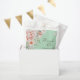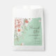 Ces sacs de faveur de mariage fleuris vous remercient présentent un design motif de pêche et de fleurs blanches avec des éléments de verdure et d'or rose sur le dessus d'un arrière - plan vert minty. Ceux-ci seront parfaits pour ceux qui recherchent un mariage de style romantique et classique ou pour un dîner de répétition, une fête de fiançailles ou toute autre occasion spéciale. Personnalisez les sacs de faveur avec les noms de la mariée et du marié ainsi que la date.