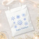 Sac cadeau de vacances en blanc avec imprimé d'art de flocons bleus. Customisez cet objet ou achetez tel quel.