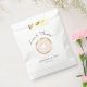 Ce sac de faveur de mariage présente une représentation graphique d'un beigne de gâteau gelé avec du gel blanc et des arroses d'or. Voici le texte du script : Amour & Merci. Le texte personnalisé vous permet d'ajouter les noms de la mariée et du marié ainsi que leur date de mariage.