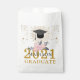 Serviettes de fête de graduation simples avec typographie décorée florale casquette grad et type or sur sac de faveur blanc pour les goodies pour vos invités, que ce soit en personne ou en voiture par grad party. Typographie simple et minimaliste et casquette gris avec rayons or.
