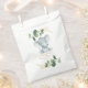 Ce sac de baby shower neutre simple mais élégant présente l'illustration d'un adorable bébé éléphant et d'une verdure d'aquarelle moderne en vert et or doux. Utilisez les champs modèle pour ajouter vos détails. Si vous souhaitez modifier le style de police, la couleur ou le placement du texte, cliquez simplement sur le bouton "Customiser plus".