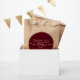 Elégant, moderne, minimaliste mariage bordeaux rouge merci pour le sac avec faux coeur de corde or et script de calligraphie simple.