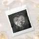 Cette collection de mariages à thème gothique foncé est adaptée à n'importe quelle période de l'année, y compris le Jour des Morts, Dia de los muertos et Halloween. L'ensemble comprend des crânes, des squelettes, des cadres de défilement ornés et des fleurs luxuriantes, le tout en noir et argent avec des accents bordeaux. Des squelettes ornés d'arc, d'ascot et de moustache sur un coeur grunge arrière - plan ajoutent à l'humeur gothique de ce sac de faveur. Ajoutez votre message, vos noms et votre date de mariage à l'aide du modèle fourni. Recherchez ID866 pour voir d'autres produits et options de couleur pour cet ensemble de conceptions.