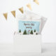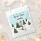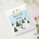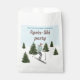 Add a festive touch to a birthday on the slopes with these ski-themed favor bags, designed by Destei. The design features a watercolor illustration of a girl skiing down snowy slopes, wearing a teal jacket with a brown hat and gloves, with green fir trees around her under a light blue winter sky with falling snow. Personalizable text areas make them perfect for a winter birthday party.