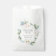 Fleurs élégantes, feuilles, dans une palette douce d'aquarelle de bleu, blanc rose et vert avec des accents d'orange ornent ce nuptiale romantique et élégant douche SAC DE FAVEUR AVEC MESSAGE MERCI ET LE NOM DE LA PONTE À ÊTRE! Ajoutez ces sacs de faveurs pour ajouter une touche personnelle à votre Mariage ou Fête des mariées ou Douche Couple. Correspondance de la collection "Fleur de floraison bleue et PInk".