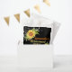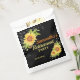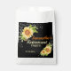 Soirée de retraite élégante : sac de faveur avec un arrière - plan noir, des tournesols fleuris jaune aquarelle et des lampes à cordes. Un grand article pour décorer une table de fête pour les départs à la retraite, anniversaires, fiançailles, baby shower, anniversaire de mariage et beaucoup d'autres. Customiser avec l'événement puis personnaliser avec le nom et la date. La couleur arrière - plan peut être modifiée si nécessaire