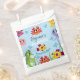 Ce charmant sac cadeau d'anniversaire à thème Under the Sea saisit la magie d'une aventure sous-marine ! Le design comprend une scène aquatique vibrante avec des créatures marines ludiques, dont un mignon crabe rouge, une étoile de mer jaune, une méduse rose, un hippocampe vert et deux poissons colorés. Ces charmantes créatures nagent dans un décor bleu clair orné de bulles, créant une atmosphère sous-marine accueillante. Le texte personnalisable au centre vous permet de le personnaliser pour votre occasion spéciale. Le style graphique est fantaisiste et adapté aux enfants, caractérisé par des contours audacieux et des couleurs plates. Il est parfait pour les jeunes publics et apporte une touche unique à votre événement.