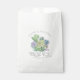 Des fontes uniques, des succulents colorés à l'aquarelle et des arrière - plans brillants dans un vert printemps doux sont les points forts de ces produits mariages mélangés et assortis. Ce beau sac de faveur a en option du texte "Merci" avec un modèle pour modifier les noms de la mariée et du marié et la date du mariage. Recherchez ID515 pour voir tous les produits correspondants dans ce jeu.