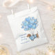The design features our sweet watercolor dachshund in his blue heart sweater, drifting along with a bundle of blue heart balloons. It includes the playful pun: "A teenie weenie thank you for coming," along with personalized space for the parents' names. Whether you're celebrating a confirmed baby boy or using these for "Team Boy" favors, they add a whimsical, coordinated touch to your gender reveal celebration.