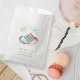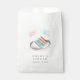 Parfait pour les fêtes de fiançailles, les dîners de répétition ou les douches nuptiales, ces sacs de faveur festifs présentent une tranche de gâteau superposé aux couleurs de l'arc-en-ciel aquarelle, surmontée de cierges magiques et de confettis aqua. Personnalisez avec vos noms et date de mariage ou date d'événement en dessous.