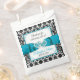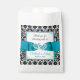 Ces sacs personnalisés et romantiques de faveur de mariage sont parfaits à utiliser à votre réception de mariage pour remercier vos invités d'avoir assisté à votre célébration. Ces sacs de mariage damassés en noir et blanc sont sûrs d'être un succès mémorable avec vos invités et sont une autre façon de garder un regard cohérent tout au long de vos célébrations mariages. L'espace design carré de ces sacs de faveur de mariage a un ruban turquoise et une image arc avec des images de coeurs joints à travers le centre. Il y a des fleurs turquoise dans les quatre coins. Au-dessus du ruban, les mots "Merci pour célébrer avec nous !" sont imprimés en écriture noire. Sous le ruban, les noms du couple heureux et la date du mariage sont imprimés en bleu turquoise et noir. Si vous avez besoin d'autres éléments correspondants, envoyez un courriel à niteowlstudio@gmail.com et regardez vos dossiers de pourriels/pourriels pour ma réponse, ou utilisez la fonction conversation Zazzle pour me contacter.