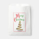 Ce design de sac de faveur papier présente un arbre de Noël rouge, vert et or d'art abstrait coloré et deux couleurs Joyeux message de Noël. L'arbre a une fausse parties scintillant étoile d'or dessus et est encadré en rouge. Remplissez le champ modèle ou supprimez le texte pour les informations au bas de la conception.