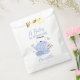Sac baby shower super mignon avec une mignonne bouilloire de cuisine moderne du milieu du siècle et tasse de thé entouré de coeurs d'amour bleu. Un design si amusant avec un script sophistiqué et facile à customiser avec un nom personnel. Un coup de coeur pour les dames qui tiennent des fêtes de thé à baby shower.