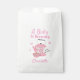 Sac baby shower super mignon avec une mignonne bouilloire de cuisine moderne du milieu du siècle et tasse de thé entouré de coeurs d'amour roses. Un design si amusant avec un script sophistiqué et facile à customiser avec un nom personnel. Un coup de coeur pour les dames qui tiennent des fêtes de thé à baby shower.