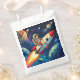 Bande dessinée rétro style sacs de faveur avec l'illustration d'un petit garçon volant sur une fusée à travers l'espace ! C
