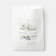Créez le sac de faveur parfait pour votre mariage botanique bohème moderne, avec ce magnifique dessin aquarelle botanique de vert de eucalyptus bleu poussiéreux clair, avec un fond en marbre de Carrera faux, des éclaboussures aquarelles et une typographie de script manuscrit tendance. Fait partie d'une suite d'invitations de mariage. Copyright Elegant Invites, tous droits réservés.