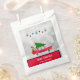 Préférez les sacs avec une vieille voiture rouge cool portant un pin vert de Noël sur son toit et un cadeau caché dans le coffre ouvert. A une belle flair de style rétro des années cinquante.Boules de Noël, flocons de neige et étoiles strung à travers le sommet. Situé sur un arrière - plan de livres d'argent avec des étoiles élégantes éparpillées un peu partout. Une bordure rouge en bas avec votre texte personnalisé à l'intérieur.