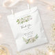 Ces sacs de bienvenue à la poitrine blanche pour mariage sont parfaits pour un mariage moderne. Le design présente de belles pivoines blanches dessinées à la main et entassées dans de beaux bouquets aux bourgeons bordeaux et aux feuilles verts. Customisez les sacs à gâteaux avec un bref message de gratitude, y compris vos noms et la date. Utilisez ces sacs pour compléter une réception de mariage, une douche nuptiale, tout événement ou fête. Le design sobre et élégant présente une typographie de script classique et sophistiquée en noir et blanc.