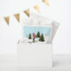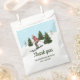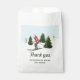 Destei's watercolor illustration featuring women skiing across white snowy slopes with green fir trees under a light blue winter sky, with snow falling around them. The design has space for a custom thank you message, making these favor bags a festive finishing touch for gifts, party favors or treats.