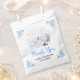 This cute and whimsical watercolor birthday favor bag features a watercolor winter wonderland scene with adorable arctic animals, such as a polar bear, penguin, cat, whale, seal and a moose. In the background are snow capped mountains, ice caps and trees. The text combines handwritten script and sans serif fonts for a stylish and modern look. Falling snowflakes and beautiful blue floral arrangements give a winter feel. This is perfect for winter and Christmas birthday parties.