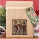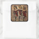 Autocollant carré avec l'image de trois danseurs canadiens français peint sur un mur déclinant. Bordure noire. Voir sac de faveur, ballotin, étiquette de faveur et étiquette correspondant. Voir l'ensemble de la collection Cancan Sticker dans les INVITATIONS | Section Stickers & Étiquettes.