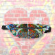 Graffiti avec signe de paix. La couleur de doublure ici violet, est personnalisable. Fanny pack.
