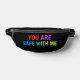 Soyez fiers de vous où que vous alliez ! Ce pack de mamie audacieux et dynamique comporte le message stimulant "You Are Safe With Me" (Vous êtes en sécurité avec moi) en couleurs arc-en-ciel, répandant soutien, amour et inclusion à chaque étape. Que vous soyez à un défilé de la Fierté, un festival, ou tout simplement à l'extérieur, ce pack léger et spacieux garde vos essentiels près et votre message fort et clair. Conçu pour le confort, la fonction et l'identité. #YouAreSafeWithMe #SafeSpaceBag #PrideVibe #LGBTQFannyPack #InclusiveStyle #LoveWins #SarendestiniDesigns #AllyFashion #BoldAndFiers #WearYourPride
