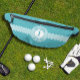 La conception personnalisée amusante du sac banane présente une silhouette de golfeuse féminine dans un cadre circulaire bicolore en forme de sarcelle avec le texte incurvé "La vie est meilleure à l'heure du tee !" dans une police de caractères sarcelle moderne. L'espace au-dessus de la fermeture éclair est conçu comme un modèle simple à utiliser pour un nom monogrammé, des initiales ou un texte personnalisé. Le fond est d'une couleur sarcelle verte unie. Veuillez utiliser la fonction de messagerie si vous avez des questions ou une demande de couleur personnalisée.