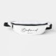 Ce sac banane chic et simple pour demoiselle d'honneur comporte votre nom sous une typographie noire élégante. Personnalisez ces cadeaux de groupe de mariage élégants et modernes pour vos événements de mariage comme l'enterrement de vie de jeune fille.