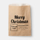 Vous cherchez un sac en papier brun avec un accueil de Noël pour emballer vos produits à vendre? Veuillez consulter ce sac en papier brun design pour les textes d'affaires en noir clair. Il se pourrait que tu l'aimes. Customise-le. Mettez votre nom d'entreprise dessus pour renforcer la sensibilisation à la marque. Pour customiser ce sac en papier brun, téléchargez votre logo d'entreprise, tapez votre nom d'entreprise ou d'entreprise, votre adresse et votre numéro de téléphone, puis vérifiez l'apparence. Si l'apparence vous plaît, vous pouvez passer votre commande maintenant. Si vous avez besoin de redimensionner et déplacer le logo et les textes pour tenir sur ce sac papier, s'il vous plaît changer dans l'outil de conception. Vous pouvez également effectuer d'autres modifications en fonction de vos préférences dans l'outil de conception, comme changer la couleur arrière - plan, la couleur de police et le style de police. Matériau d'emballage personnalisable avec voeux de Noël. Vous pouvez l'utiliser comme un matériel de marketing pour annoncer votre entreprise ou pour promouvoir votre marque auprès des clients. Joyeux Noël! Je vous souhaite plus de ventes cette saison des Fêtes.