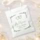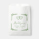 Célébrez votre jour spécial avec nos sacs-cadeaux de fête prénuptiale à cœur vert dessinés à la main et fantaisistes. Ce modèle charmant et personnalisable présente des détails délicats dessinés à la main dans des teintes vertes douces, créant une atmosphère romantique et accueillante pour votre fête prénuptiale. Parfaits pour donner le ton à votre occasion joyeuse, ces sacs-cadeaux vous permettent d'ajouter votre touche personnelle, les rendant vraiment uniques.