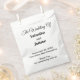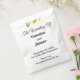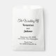Sacs de faveurs de mariage avec du texte noir sur fond blanc pour les couples qui recherchent une combinaison de couleurs classique et intemporelle qui peut compléter divers thèmes de mariage. Ceux-ci conviennent également aux couples qui préfèrent un design basé sur le texte sans éléments de fond pour une meilleure lisibilité. Le texte noir contrastant sur le fond blanc améliore également la lisibilité. Le texte est centré et les polices utilisées sont la calligraphie, le script et le sans empattement. Les polices de calligraphie et de script sont utilisées pour améliorer le design tandis que la police sans empattement est utilisée pour améliorer la lisibilité. Personnalisez-le en tapant les noms de la mariée et du marié, la date et le lieu du mariage. Vous pouvez également modifier la formulation dans l'outil de conception, y compris le style et la couleur de la police. Veuillez vérifier l'apparence après avoir saisi le texte. Si l'apparence vous plaît, vous pouvez passer votre commande maintenant. Si vous devez redimensionner ou repositionner le texte, veuillez ajuster dans l'outil de conception. À la mariée et au marié, félicitations