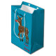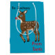 Festive De Père Noël Nom Personnalisé. Le personnage de dessin animé de Festive Super Snow the Blue-Eyed Reindeer bouton buck avec son nez rouge avec des bouts de bleu, et des taches blanches sur son manteau brun. Il est Père Noël le plus jeune bouton buck espérant rejoindre son traîneau un jour ! Design original © 2016 TamiraZDesigns.