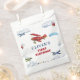 Envoyez vos invités d'anniversaire d'avion avec des faveurs ? Ajoutez la touche parfaite à vos sacs de fête d'anniversaire de l'avion vintage avec des étiquettes d'anniversaire d'anniversaire d'avion vintage. Modifiez et personnalisez facilement les détails de votre sac à dos avec le nom de votre petit. Ces sacs de faveur d'avion garçon ajoutent une touche spéciale et personnalisée à vos faveurs colorées d'anniversaire d'avion pour les invités de fête d'anniversaire. La collection PERCY est composée d'un arrière - plan blanc aux cieux nuageux et d'avions vintages en rouge, bleu et vert, avec des bannières d'avion et des drapeaux vintages colorés volant dans le ciel. Serif manuscrit et gras en bleu et rouge avec texte modifiable.