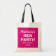 Sacs fourre-tout de nuit pour les filles de la fête de la poule rose néon personnalisés. Accessoires amusants pour bachelorette, nuit femme, douche nuptiale, mariage etc. Faites-en un pour que la mariée soit mariée et l'équipe de la mariée, demoiselle d'honneur, femme de ménage, chef d'honneur, etc.