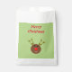 Ce pack impressionnant de 50 sacs de faveur présente un dessin humoristique d'un Reindeer. Il a les yeux noirs et un énorme nez rouge vif et brillant. Les bois pointent vers le haut et semblent futuristes faisant de ce renne un cyber renne. Il est toujours mignon et amical. Il y a du texte personnalisable en haut des sacs pour que vous puissiez les personnaliser avec un message de votre choix.