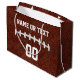 Sacs personnalisés de cadeau du football, votre nom, nombre ou monogramme ou votre texte ou suppression. Concepteur Linda d'APPEL : 239-949-9090 pour créer plus d'idées, de décorations et d'approvisionnements de fête d'anniversaire du football. Vous, ou le concepteur Linda, pouvez vous déplacer, remettre à la côte ou changer l'arrière - plan du football ou les images l'un des de points du football ou supprimer n'importe quelle partie du texte ou concevoir.