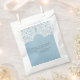 Simples et sophistiqués Elegant Lace Wedding Favor Sacs avec un motif de dentelle blanche sur un arrière - plan en papier vintage faux bleu clair. Ces sacs classiques et élégants sont parfaits pour un mariage rustique. Facile à customiser avec vos détails mariages. Cliquez sur "Customiser" pour trouver d'autres options de personnalisation.