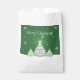 Offrez-vous des forfaits pour cette période de fêtes avec un sac vert de Noël Favor. Le design de sacs préférés comprend un trio d'arbres de Noël enneigés décorés contre un arrière - plan vert et des flocons de neige tombants. Autres cadeaux et objets de vacances disponibles avec ce design aussi.